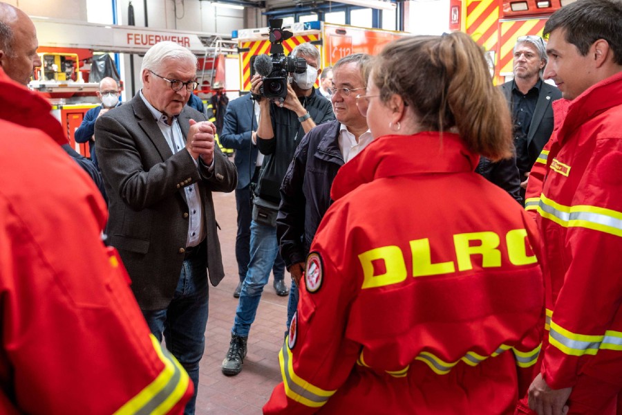 Prezydent Niemiec Frank-Walter Steinmeier premier Nadrenii Północnej-Westfalii Armin Laschet. Fot. MARIUS BECKER / POOL/ EPA/PAP
