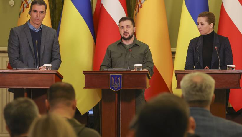 Premierzy Hiszpanii i Danii, Pedro Sanchez i Mette Frederiksen, którzy spotkali się w czwartek w Kijowie z prezydentem Ukrainy Wołodymyrem Zełenskim, zadeklarowali dalszą pomoc dla ukraińskich sił zbrojnych.