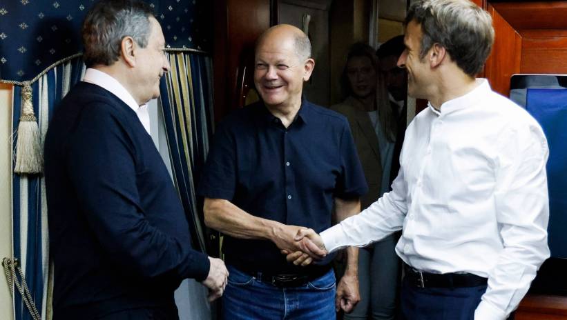 Prezydent Francji Emmanuel Macron, kanclerz Niemiec Olaf Scholz i premier Włoch Mario Draghi przybyli do Kijowa, poinformowało w czwartek biuro Macrona.