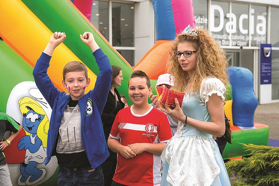 Kiedy córki bawiły się w najlepsze na placu z dmuchaną zjeżdżalnią i całą masą innych atrakcji, on wziął udział w konkursie i był najszybszy w znajdywaniu wizytówek ukrytych w pakownych wnętrzach samochodów Dacii.