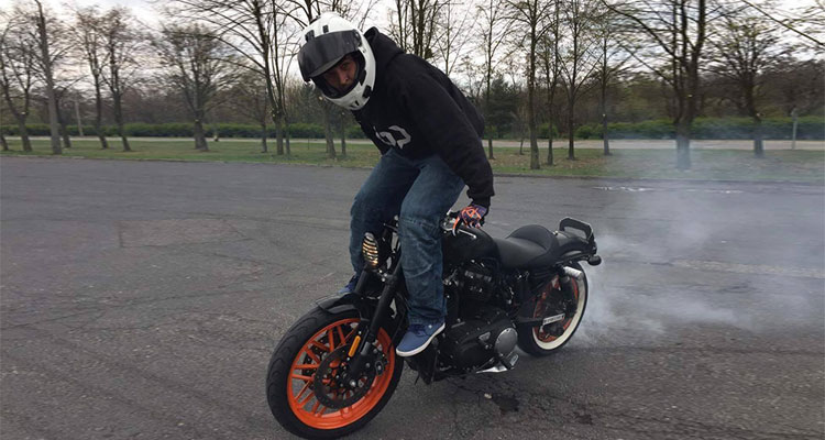 Pokazy ekstremalnej jazdy wykonywał na różnych motocyklach. W końcu postanowił wypróbować harleya. A konkretnie – motocykl Harley-Davidson Sportster Iron 883. To maszyna niełatwa do akrobacji, ale, jak mówi Maciej, duża masa i ogromny moment obrotowy robią z niej solidne narzędzie do driftu. Jego harley został dodatkowo zmodyfikowany, ale jak mówią w firmie GOC, która buduje przecież także fantastyczne customy, żadna inna marka nie nadaje się do modyfikacji tak, jak właśnie Harley-Davidson.