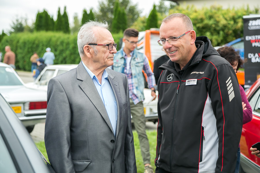 Zarówno pan Maciej, jak i pan Krzysztof nie przegapili na zlocie okazji, by dokładnie przyjrzeć się najnowszym modelom ukochanej marki, prezentowanym przez organizatora zlotu – firmę D&R Czach - Autoryzowanego Dealera Mercedes-Benz. Obok najnowszej Klasy S, na kampusie Kielnarowej stanęła cała gama sportowych samochodów Mercedes-AMG, w tym najnowsze modele - AMG GT i AMG GT R. Okazja do bogatej prezentacji tych aut była wyjątkowa – marka AMG obchodzi w tym roku  50-lecie.