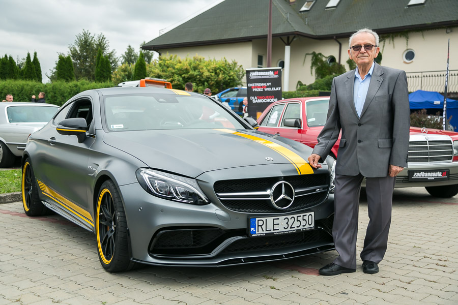 W Kielnarowej nie było jazd testowych AMG, ponieważ te przeprowadza się na torach wyścigowych, w bezpiecznych warunkach. Ale o tym, że to auta nie tylko dla tych, którzy mają rajdowe zacięcie, świadczyło pojawienie się na zlocie Classic Cars Family D&R Czach wyjątkowego gościa. 510-konnym AMG, który do setki przyspiesza w 4 sekundy, wjechał na plac w Kielnarowej – 80-letni Jerzy Głąb, lekarz pediatra i neonatolog z podłańcuckiej Markowej. Od razu obległ go tłum „zlotowiczów” i ludzi z aparatami. Niskie mruczenie silnika i lakier w stalowo-czarnym macie z żółtymi akcentami naprawdę robi wrażenie. – Od kiedy mam to auto, zawsze to się dzieje– każdy chce mieć mój samochód na zdjęciu – uśmiechał się doktor Jerzy. – Mercedesem jeżdżę dopiero od czterech lat. To już mój drugi samochód AMG. Poprzedni był słabszy, miał 360 KM. Ten kupiłem trzy miesiące temu. Kryje pod maską 510 KM. Ale ja jeżdżę spokojnie, zgodnie z przepisami. Czasem więcej na autostradzie, 140-150 km/h.