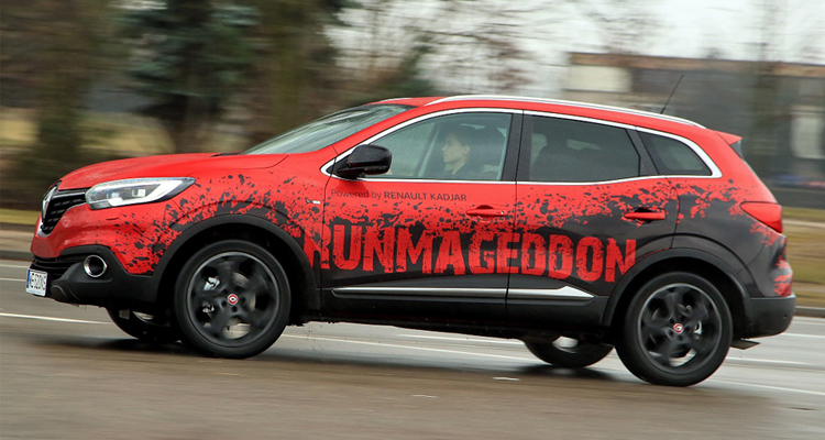 Renault KADJAR, model, który stał się samochodową wizytówką RUNMAGEDDON, to kompaktowy crossover Renault, wyróżniający się atletyczną sylwetką połączoną z atrakcyjnymi, płynnymi liniami nadwozia. Wnętrze zaprojektowane z myślą o potrzebach kierowcy wyróżnia się przestronnością i wysokiej jakości wykończeniem. Auto łączy cechy SUV-a, kombi i hatchbacka, a jednocześnie dysponuje wszelkimi atutami prawdziwego crossovera: możliwością jazdy po każdym rodzaju nawierzchni dzięki napędowi na cztery koła i dużemu prześwitowi wynoszącemu 200 mm, możliwością zmiany konfiguracji wnętrza w intuicyjny sposób oraz bagażnikiem o pojemności 472 dm³ VDA (527 l).