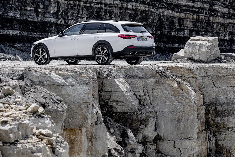 W porównaniu do konwencjonalnej Klasy C Kombi wersja All-Terrain ma nieco większe wymiary. Jest o 4 mm dłuższa – mierzy 4755 mm. Dzięki nakładkom nadkoli szerokość wzrosła o 21 mm, do 1841 mm. Z kolei zwiększony o około 40 mm prześwit sprawia, że wysokość pojazdu wynosi 1494 mm. Standardowy rozmiar opon to 225/55 R 17 na felgach 7,5 J x 17 H2 ET 44,5. Opcjonalnie dostępne są zestawy z ogumieniem 245/45 R 18 na obręczach 8 J x 18 H2 ET 41 oraz 245/40 R 19 na felgach 8 J x 19 H2 ET 41.
