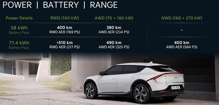 Samochód oferowany będzie z akumulatorami o dwóch pojemnościach: 58 kWh lub 77,4 kWh. Minimalny zasięg to 380 km dla wersji z napędem na cztery koła, a maksymalny – przynajmniej 510 km w wersji z napędem na tył.