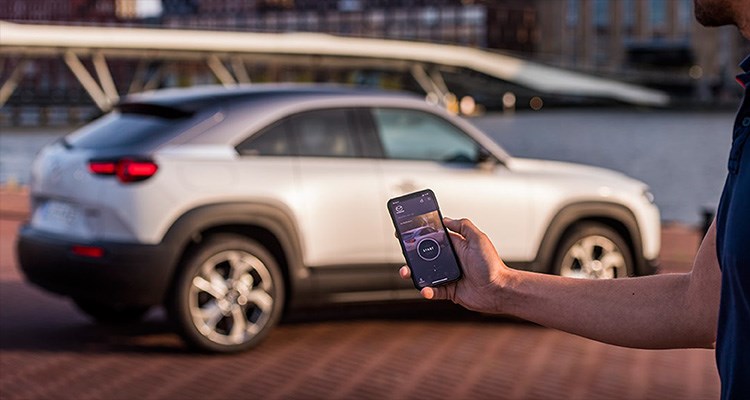 Nowa, całkowicie elektryczna Mazda MX-30 jest pierwszą w gamie, która korzysta z najnowszej aplikacji MyMazda, a Mazda dodała funkcje dostępne tylko w pojeździe elektrycznym. Należą do nich powiadomienia, jeśli kierowca zapomni podłączyć kabel ładujący, możliwość sterowania ładowaniem za pomocą timera, monitorowanie postępu ładowania i wskaźnik zasięgu.