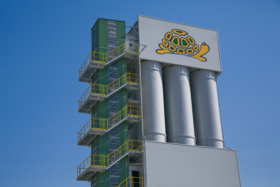 Paweł Pogorzelec: Tak, nowa linia to aż 12 zbiorników o pojemności 80 m³, czyli w sumie około 1000 m³ surowców typu cement, wapno, piasek, gips, co daje ok. 1200-1300 ton przy maksymalnym wypełnieniu. Gdyby chciano załadować wszystkie silosy, przy trybie ciągłym, to potrzeba aż dwóch dni pełnego rozładunku, mając na uwadze, że równocześnie jesteśmy w stanie rozładowywać trzy cysterny. Całkowita wysokość wieży, w której mieszczą się te silosy, to 34 metry. Natomiast poziom załadunku, czyli wysokość na jaką musi być dostarczony piasek, cement czy inne spoiwo, wynosi 28 metrów. To oznacza, że składniki, z których powstanie produkt trzeba „wyrzucić” w górę, za pomocą powietrza, pneumatycznie, na ok. 30 m.