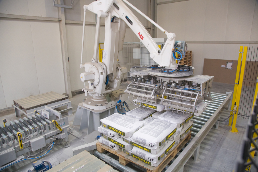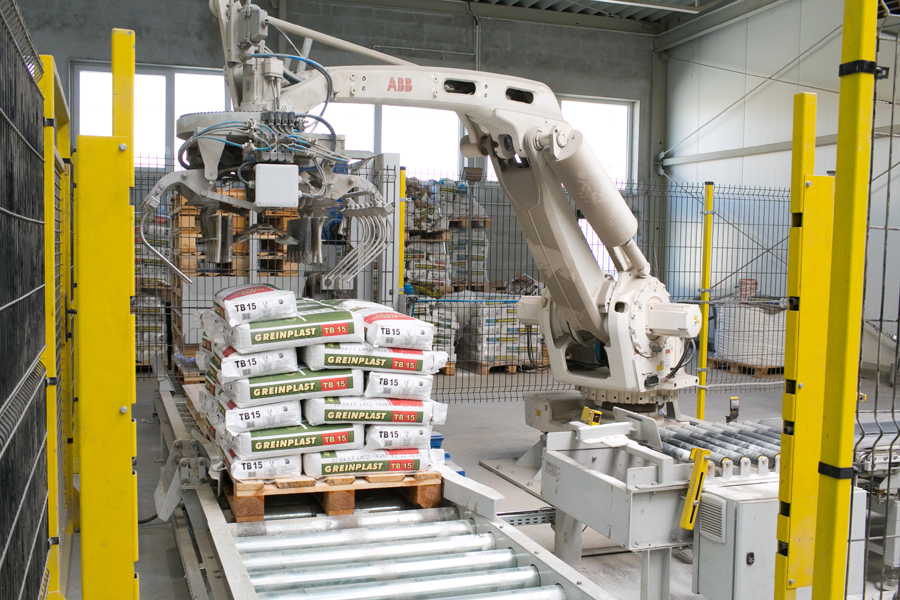 Tak, cały proces produkcyjny jest w pełni automatyczny, ale oczywiście wszystko odbywa się pod nadzorem człowieka, po to, by w przypadku jakichkolwiek błędów, operator mógł je skorygować. Prowadzony jest też pełny zapis procesu produkcji. Całkowicie automatyczne jest również dozowanie dodatków chemicznych, czyli tego, co decyduje, że dany wyrób będzie zaprawą tynkarską, zaprawą klejową albo lepszą zaprawą klejową niż konkurencyjne zaprawy. Niezwykle istotna jest kwestia dokładności ważenia. Waga na linii do produktów „wyrafinowanych” ma możliwości naważania 150 kg dodatków chemicznych, a jej dokładność wynosi 10 dag. Przy surowcach masowych, czyli spoiwach, piaskach, kruszywach itp., gdzie jedna połówka wagi ma możliwość naważania 2 ton, dokładność wynosi 2,5 kg.
