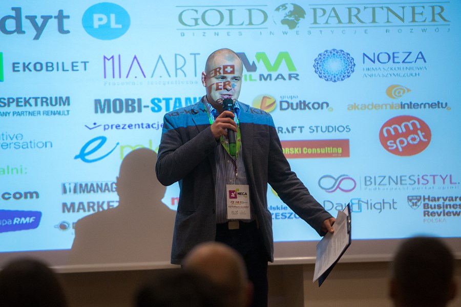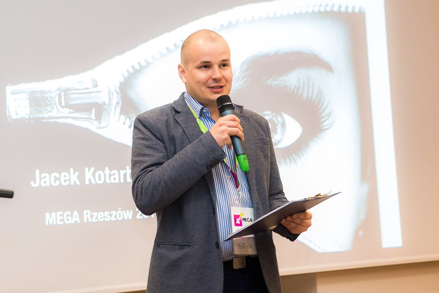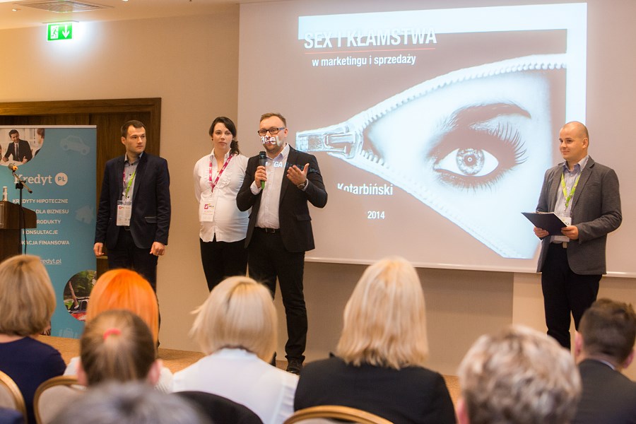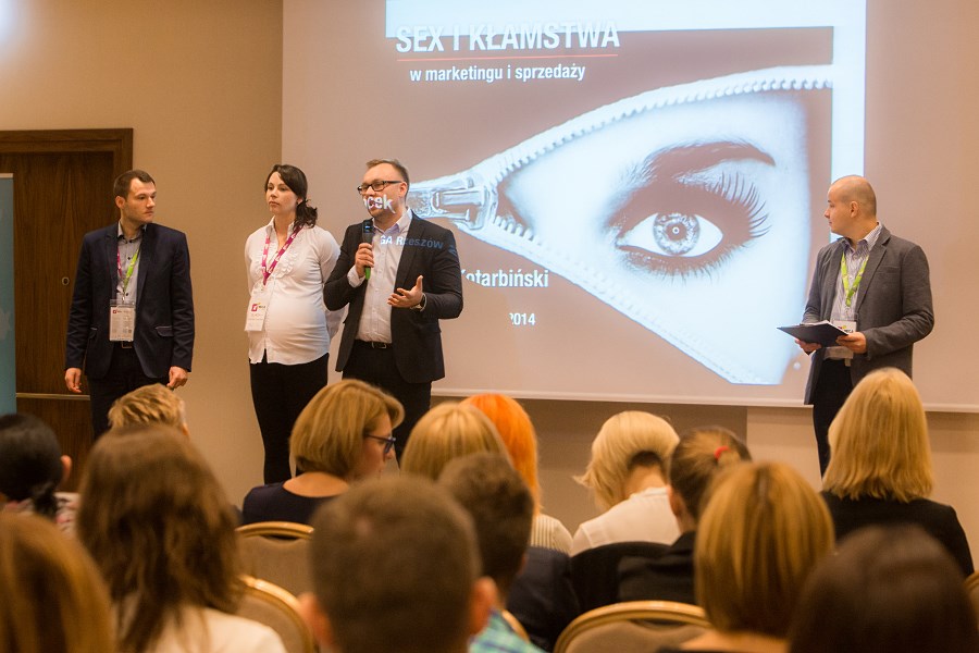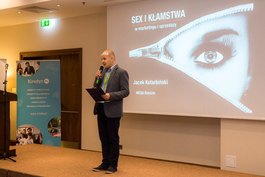 Część teoretyczną pierwszego dnia Mega Rzeszów Conference rozpoczęła prelekcja  Jacka Kotarbińskiego, laureata konkursu Blog Roku 2012 Onet.pl, który poruszył kontrowersyjny temat seksu i kłamstw w marketingu i sprzedaży. Prelekcję rozpoczął od pytania: po co ludzie prowadzą firmę? Wśród odpowiedzi pojawiały się sugestie, że dla kasy, żeby się rozwijać, bo ma się wizję. Zdaniem Kotarbińskiego ludzie prowadzą biznesy przede wszystkim dlatego, żeby mieli za co żyć, jednak poziomu zyskowności nie da się określił i nikt tego nie zrobił. Każdy przedsiębiorca myśli określonymi kategoriami: zdobyć zaufanie, wykreować rynek dla swoich produktów, stworzyć markę i zarabiać pieniądze. - Ale pytanie brzmi: na czym? Czy na robieniu ludzi w konia? – zastanawiał się Kotarbiński. - Robienie ludzi w konia to cały przemysł, mamy gwiazdki i kruczki w umowach, które podpisujemy, a których większość ludzi ich nie czyta. Dlaczego? Nie tylko dlatego, że się im nie chce, ale również dlatego, że ufa danej marce. Są też stosowane niedomówienia i ściema w reklamie, choćby proste promocje sklepowe.