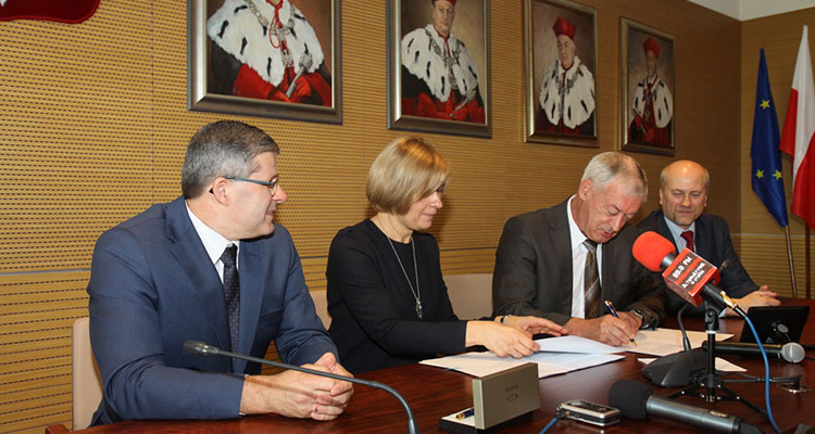 Tadeusz Markowski, rektor Politechniki Rzeszowskiej i Janusz Zakręcki, prezes i dyrektor naczelny PZL Mielec podpisali umowę rozszerzającą współpracę pomiędzy tymi dwoma organizacjami. - Politechnika Rzeszowska jest jedną z polskich uczelni technicznych, posiadającą status uniwersytetu technicznego. Nasza współpraca z przemysłem polega nie tylko na prowadzeniu badań naukowych na zlecenie, opracowywaniu patentów i wdrożeń, ale również prowadzeniu studiów doktoranckich i podyplomowych skierowanych m.in. do pracowników firm działających nie tylko na Podkarpaciu - mówi prof. dr hab. inż. Tadeusz Markowski, rektor Politechniki Rzeszowskiej. - Polskie Zakłady Lotnicze w Mielcu są jednym z naszych stałych partnerów, a dzisiejsza umowa jest dowodem naszej wieloletniej współpracy.