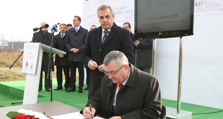 Minister infrastruktury i budownictwa Andrzej Adamczyk podczas briefingu w Stalowej Woli. Fot. GDDKiA O/Rzeszów