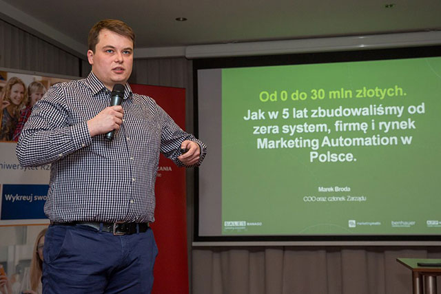 Sukces może przyjść bardzo szybko, czego najlepszym dowodem jest krakowska firma SALESmanago, dostarczająca firmom narzędzie, pozwalające na automatyzację marketingu oraz personalizowanie serwisów i aplikacji. Marek Broda, 29-letni dyrektor operacyjny i członek zarządu, również przyjechał na spotkanie do Rzeszowa, by opowiedzieć, jak dojść od zera do 30 mln złotych – SALESmanago udało się to w ciągu 5 lat.