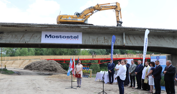 Budowę mostu rozpoczęła w kwietniu firma Mostostal Kielce S.A. Roboty budowlano-montażowe wykonywane są przy całkowitym zamknięciu mostu i skierowaniu ruchu na drogi objazdowe. W miejscu wysłużonego mostu powstaje nowy, kompleksowo wyposażony w 7-metrową jezdnię, szerszy chodnik i ciąg pieszo-rowerowy. Bezpieczeństwo na obiekcie zwiększą balustrady i bariery. Zamontowane zostanie również oświetlenie. Nowa przeprawa będzie posiadała najwyższą klasę, co oznacza, że ograniczona dziś do 15 ton nośność zostanie podniesiona do 50 ton.