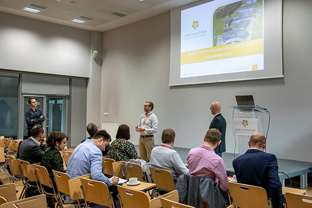 O innych formach wspierania startupów przez Inkubator Technologiczny Aeropolis, opowiedzieli przedstawiciele instytucji, uczelni i firm kooperujących z Inkubatorem Technologicznym Aeropolis. Michała Rzucidło, kierownika Centrum Obsługi Inwestora RARR S.A., goście pytali, ile czasu zajęło zbudowanie Podkarpackiego Parku Naukowo-Technologicznego Aeropolis i czy działające w nim mniejsze firmy kooperują z dużym biznesem. Tak rzeczywiście się dzieje. A o tym, jak bardzo sprzyjające biznesowi jest to środowisko potwierdza fakt, że w utworzonym w 2003 roku Parku już brakuje terenów dla inwestorów. - Dlatego nowi lokują się w bliskim sąsiedztwie. Tak zrobiła np. spółka EME Areo, będąca wspólnym projektem MTU Aero Engines i Lufthansa Technik - podkreślała Katarzyna Chlebek z Podkarpackiego Centrum Obsługi Inwestorów i Eksporterów przy Urzędzie Marszałkowskim Województwa Podkarpackiego. Zwróciła uwagę także na otwarte dwa lata temu Centrum Wystawienniczo-Kongresowe G2A Area. Do tej pory odbyło się w nim 150 wydarzeń, w których uczestniczyło 1000 przedsiębiorstw.