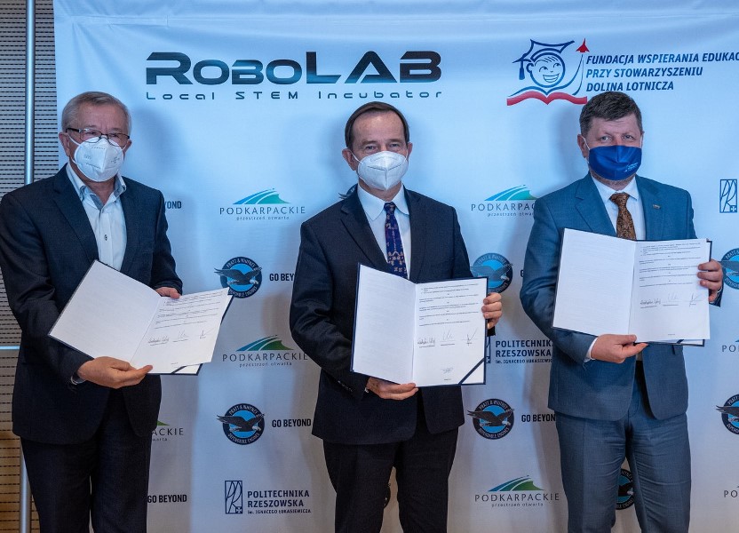 Od lewej: Marek Darecki, Władysław Ortyl, prof. Piotr Koszelnik. Fot. Arkadiusz Surowiec/Politechnika Rzeszowska