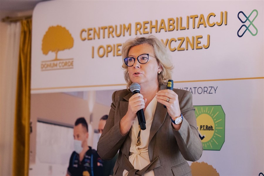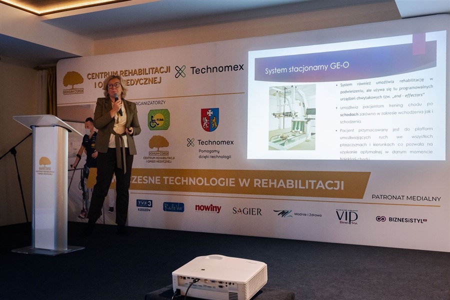 - Cieszymy się, że Technomex wsparł nas w przygotowaniu wydarzenia. W urządzenia między innymi od tego dostawcy jest wyposażony nasz ośrodek rehabilitacji. Jak wykorzystujemy je podczas pracy z pacjentami, pokazujemy także podczas dzisiejszego zebrania naukowego. Mamy tych urządzeń sporo, więc uczestnicy szkolenia mogą zobaczyć, jak działają m.in. roboty medyczne do ponownej nauki chodzenia, takie jak: Robogate, który umożliwia rozpoczęcie rehabilitacji u osób jeszcze leżących i bez kontaktu werbalnego, czy egzoszkielet służący do ponownej nauki prawidłowych wzorców chodu. W ośrodku mamy naprawdę szeroki wachlarz technologii: cyber-oko do komunikacji z wybudzonymi ze śpiączki, system Vibramoove działający na sparaliżowane ciało poprzez wibracje; stół pionizacyjny z funkcją kroczenia. Prowadzimy także terapię kończyn górnych, mikropolaryzację mózgu - mówi Kinga Łabuda, kierownik ośrodka Donum Corde Centrum Rehabilitacji i Opieki Medycznej.
