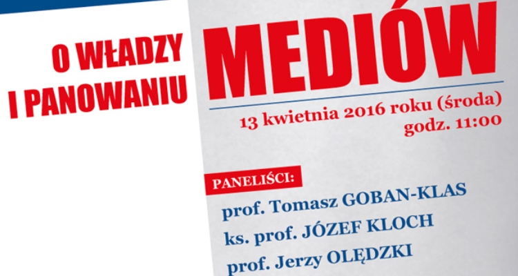 Jaką rolę we współczesnej rzeczywistości odgrywają media? Na czym polega ich rzeczywista władza? Czy dziś potrzebni są jeszcze dziennikarze, specjaliści tworzący media? Na te pytania podczas otwartej debaty na WSIiZ-ie będą starali się odpowiedzieć: ks. prof. Józef Kloch, były rzecznik prasowy Konferencji Episkopatu Polski; prof. Tomasz Goban-Klas, socjolog i medioznawcza, oraz prof. Jerzy Olędzki z Uniwersytetu Kardynała Stanisława Wyszyńskiego.