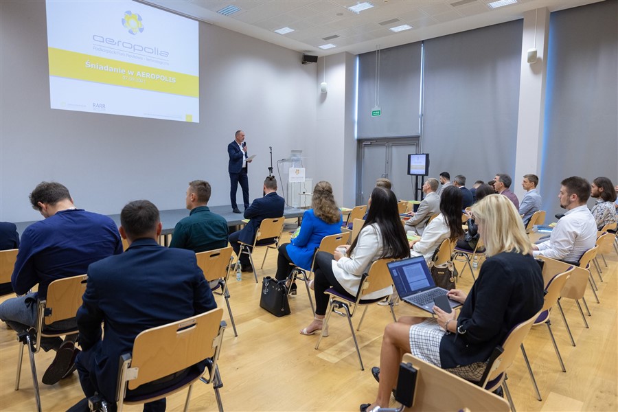 Adam Ptak, szef firmy Skala-Tech. Fotorelacja ze Śniadania w Aeropolis, 7 września 2021. Fot. Archiwum RARR. S.A.