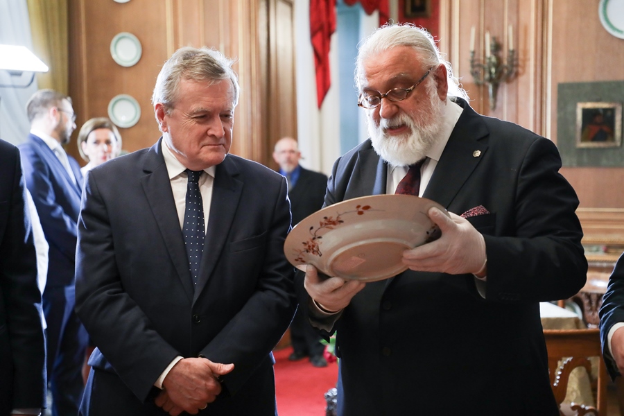 Minister kultury i dziedzictwa narodowego podkreślił, że nabyte porcelanowe talerze i półmisek stanowiły dar cesarza chińskiego dla polskiego króla Jana III Sobieskiego, który następnie podarował je rodzinie Czartoryskich.