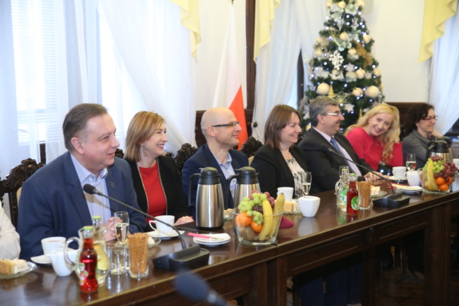 Tadeusz Ferenc, prezydent Rzeszowa oraz jego najbliżsi współpracownicy spotkali się w piątek w rzeszowskim Ratuszu z przedstawicielami podkarpackich mediów na świąteczno - noworocznym spotkaniu. To już doroczna tradycja, którą podtrzymują także marszałek województwa oraz wojewoda podkarpacka.