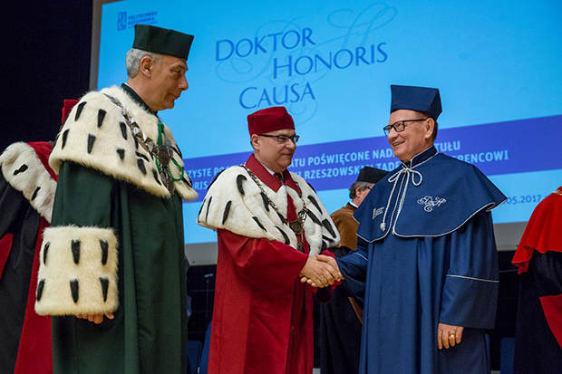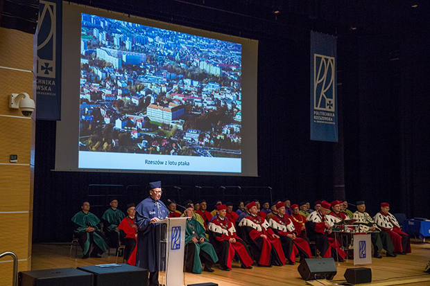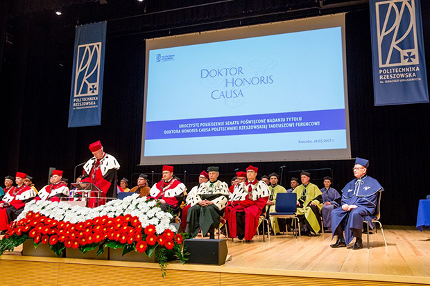 - Trema jest maksymalna – powiedział prezydent Rzeszowa odbierając godność doktora honoris causa Politechniki Rzeszowskiej. Tadeusz Ferenc jest 11 osobą, która otrzymała ten tytuł przyznawany przez politechnikę. Wręczenie odbyło się w piątek, 19 maja podczas posiedzenia senatu uczelni, a wśród gości znaleźli się m.in. Leszek Miller, Grzegorz Schetyna, Janusz Piechociński, Paweł Kowal, podkarpaccy posłowie, rektorzy tutejszych uczelni, rektorzy z uczelni innych miast, a także przedstawiciele służb mundurowych, Kościoła i biznesu - łącznie ponad 400 osób.