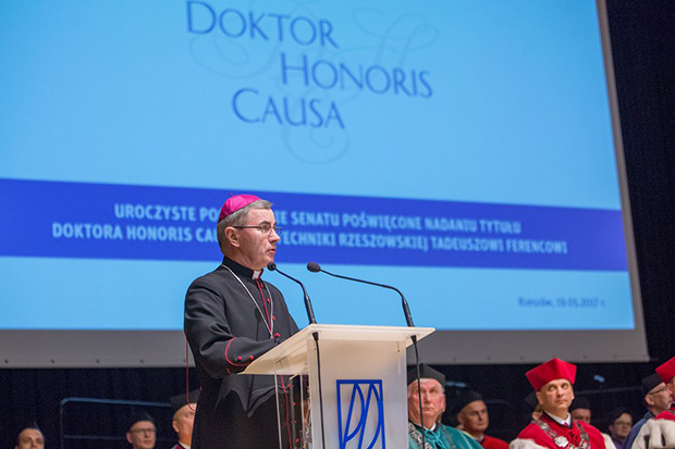 Zarówno rektor uczelni - prof. Tadeusz Markowski, jak i wygłaszający laudację prof. dr hab. inż. Grzegorz Budzik oraz prof. dr hab. inż. Kazimierz Buczek, dziekan Wydziału Elektrotechniki i Informatyki Politechniki Rzeszowskiej podkreślali zaangażowanie Tadeusza Ferenca w rozwój politechniki, całej społeczności akademickiej w Rzeszowie oraz w metropolizację miasta. Akcentowali prowadzoną przez prezydenta przyjazną politykę proinwestycyjną, wspieranie konferencji naukowych i różnego rodzaju inicjatyw. - Prezydent Tadeusz Ferenc to wybitny samorządowiec, który od wielu lat jest przyjazny rzeszowskim uczelniom – mówił Grzegorz Budzik.