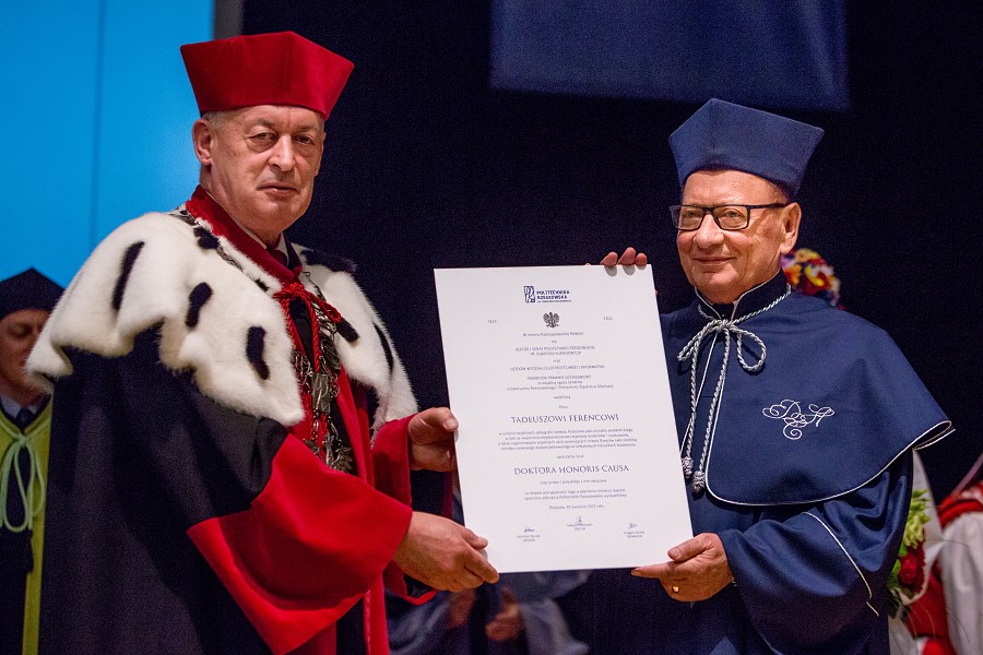 Senat Politechniki Rzeszowskiej przyjął uchwałę dotyczącą rozpoczęcia postępowania o nadanie tytułu doktora honoris causa PRz Tadeuszowi Ferencowi pod koniec stycznia br. 20 kwietnia ustawa o nadaniu tej godności prezydentowi Rzeszowa została przyjęta, wnioskodawcą była Rada Wydział Elektrotechniki i Informatyki Politechniki Rzeszowskiej.