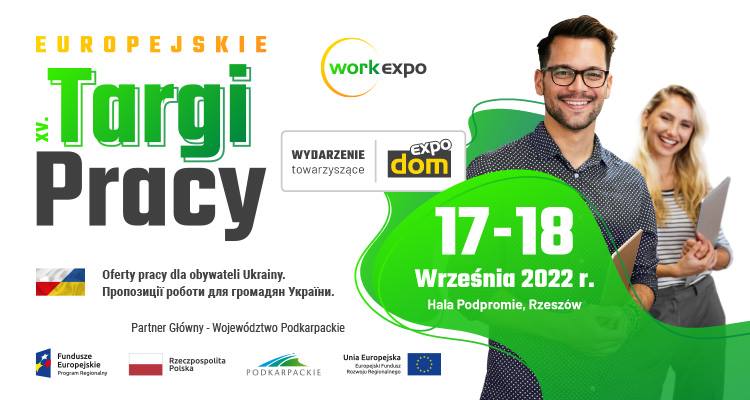 XV Europejskie Targi Pracy WORK EXPO 17-18 września w Rzeszowie stwarzają okazję do zaprezentowania ofert pracy a poszukującym zatrudnienia stwarzają doskonałą okazję do zapoznania się z najnowszymi ofertami pracy, szkoleń i staży. Targi pracy to także najszybszy sposób rozpoczęcia udanego procesu rekrutacji.