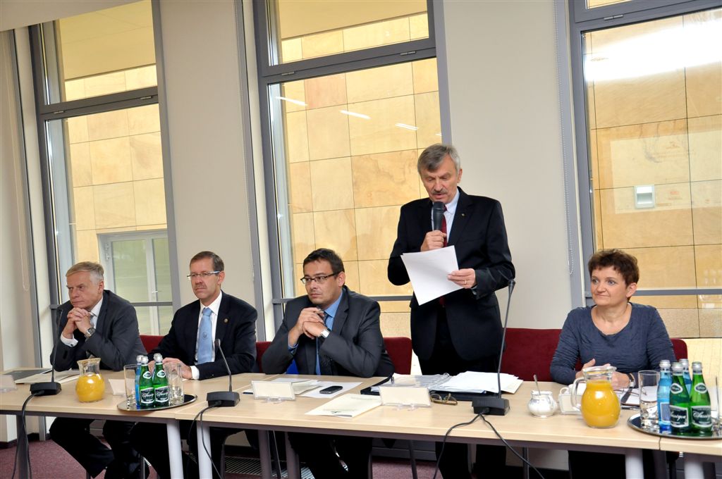 Prof. dr hab. Bronisław Marciniak Przewodniczący KRUP, Rektor Uniwersytetu im. Adama Mickiewicza podczas konferencji prasowej wprowadził nowe pojęcie: „konserwatywna innowacyjność w klasycznych uniwersytetach polskich” w odniesieniu do zmian, które zaszły w szkolnictwie wyższym w ostatniej dekadzie. Najważniejsze z nich to: skutki przejścia od kształcenia elitarnego do masowego w warunkach ograniczeń finansowych i oddziaływań rynkowych. Wpływ na to miała rewolucja technologiczna i zmiana kulturowa w sposobach komunikowania się ludzi, wpływających w istotny sposób na metodykę i formę współpracy naukowej oraz kształcenia na poziomie wyższym. „Przemiany w otoczeniu szkół wyższych rodzą wyzwania dla uczelni” – mówił Rektor UR. W programie pobytu Rektorzy zwiedzali też Muzeum – Zamek w Łańcucie.