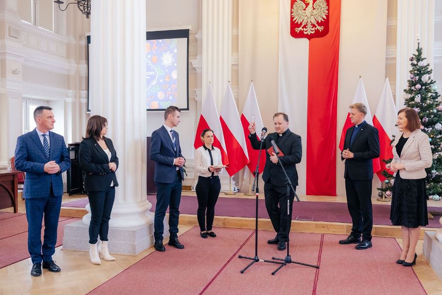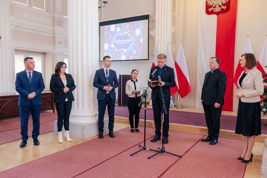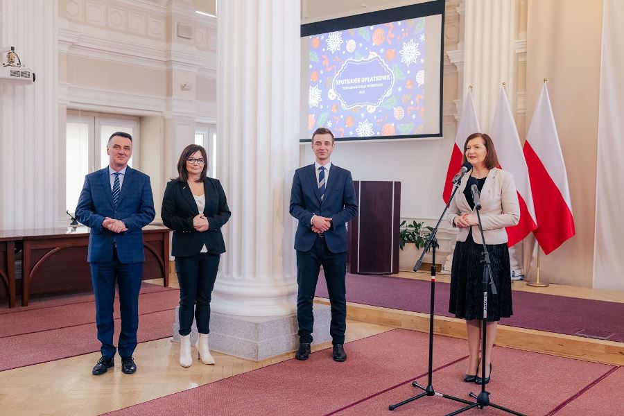 Dziennikarze lokalnych mediów, prasy, radia i telewizji, podzielili się opłatkiem na wigilijnym spotkaniu z podkarpackim wojewodą, Ewą Leniart; wicewojewodami - Jolantą Sawicką i Radosławem Wiatrem oraz Marcinem Zaborniakiem, dyrektorem generalnym Podkarpackiego Urzędu Wojewódzkiego. Uroczystość odbyła się w czwartek, 22 grudnia w PUW w Rzeszowie.