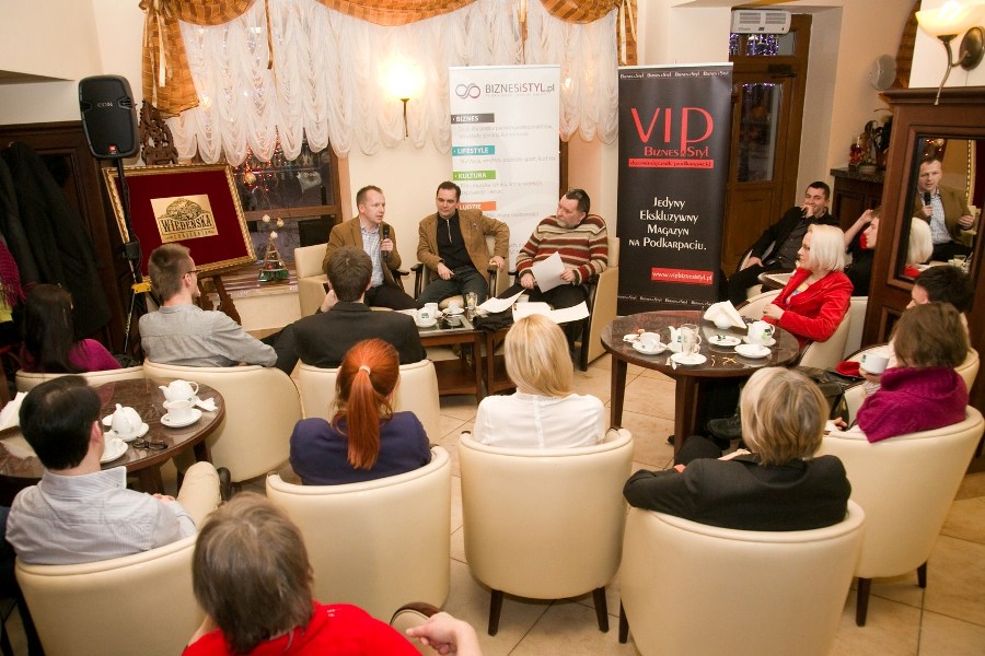 To przykładowe tematy, które w piątkowy wieczór rozważało kilkudziesięciu uczestników inauguracyjnego spotkania z cyklu BIZNESiSTYL.pl "Na Żywo”, zorganizowanego pod patronatem portalu BIZNESiSTYL.pl oraz magazynu VIP Biznes&Styl. Spotkanie odbyło się w Cukierni Wiedeńskiej Hotelu Ambasadorskiego na rzeszowskim Rynku. Przewodnikami po tematach związanych z poszukiwaniem harmonii, głębi i spełnienia oraz dobrych relacji z drugim człowiekiem, zarówno w życiu, jak i biznesie, byli Rafał Seremet, specjalista z zakresu promocji zdrowia i zdrowego trybu życia, autor książek i poradników z zakresu rozwoju wewnętrznego potencjału, twórca darmowego internetowego kursu relaksacji, kompozytor muzyki relaksacyjnej, terapeuta Shiatsu i Quigong, oraz Andrzej Lesiak, przedsiębiorca działający w branży IT, który od kilku lat współpracuje z Amerykaninem Davidem Neenanem, asystując w polskiej edycji legendarnych warsztatów Business&You. Obaj panowie prowadzą także swoje blogi na naszym Portalu..