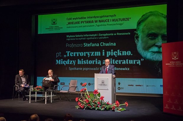 Wykład prof. Chwina odbył się w poniedziałek, 19 lutego o godz. 17, w Teatrze im. Wandy Siemaszkowej w Rzeszowie. Spotkanie poprowadził Wojciech Bonowicz - redaktor i felietonista "Tygodnika Powszechnego". Wykład jest organizowany w ramach II edycji cyklu wykładów popularnonaukowych „Wielkie pytania w nauce i kulturze", realizowanego przez Wyższą Szkołę Informatyki i Zarządzania, pod patronatem "Tygodnika Powszechnego".