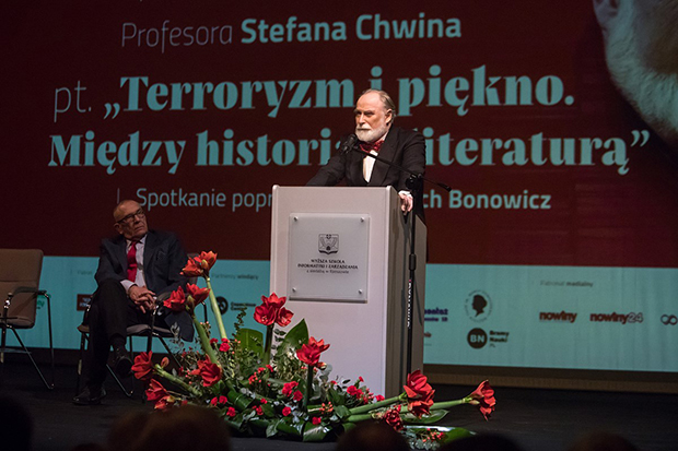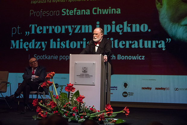 Tak rozpoczął się ponad godzinny wykład profesora, w którym zmierzył się on z tematyką rzadko omawianą w historii literatury i jeszcze rzadziej w naszej codzienności. Prof. Stefan Chwin zaznaczył, że polska kultura zetknęła się na dobre z terroryzmem na przełomie XVIII i XIX wieku w wyjątkowo niesprzyjających okolicznościach, podczas trzech zaborów. Wielokrotnie przywoływał znane i mniej znane dzieła literackie oraz stosunek pisarzy do terroryzmu. Nawiązywał też do ważnych wydarzeń historycznych, jak np. zrzucenie bomby na Hiroszimę. - Czy zrzucenie bomby o godzinie ósmej rano na miasto, które nie miało strategicznego znaczenia w działaniach wojennych, można nazwać atakiem terrorystycznym? - pytał.