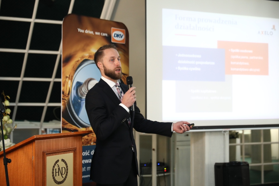Łukasz Krawczyk, reprezentujący Axelo Ostrowski, Domagalski i Wspólnicy Sp. K., w prelekcji pt. „Zabezpieczenie majątku jako sposób zmniejszenia ryzyka w działalności transportowej” poruszył cztery kwestie istotne dla przedsiębiorcy prowadzącego działalność transportową. Są to: forma prowadzenia działalności, umowy, rozdział majątku firmowego od prywatnego oraz bieżące audyty prawno-podatkowe.