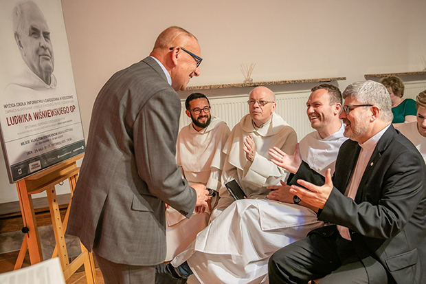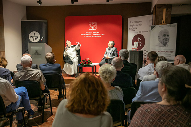 Dr Wergiliusz Gołąbek, rektor WSIiZ na wstępie do rozmów w rzeszowskim Klasztorze Dominikanów zwrócił uwagę na głęboki humanizm, zakorzenienie w Ewangelii i szacunek do wolności w myśli o. Wiśniewskiego. - Przeraża mnie, że niektórzy tego nie rozumieją, bo to oznacza brak zrozumienia istoty chrześcijaństwa - podkreślił dr Gołąbek i zacytował słowa prof. Tadeusz Pomianka z posłowia do książki „Nigdy nie układaj się ze złem”, wyrażające nadzieję, że postawa i niezłomność o. Wiśniewskiego będą pomocne szczególnie młodemu pokoleniu, „by nie zgubiło busoli wartości w tych nieobliczalnych czasach.”