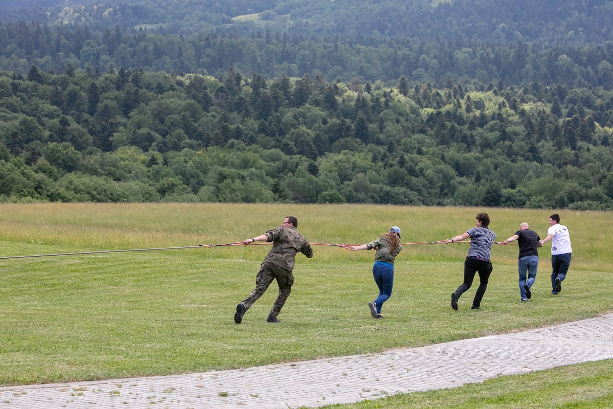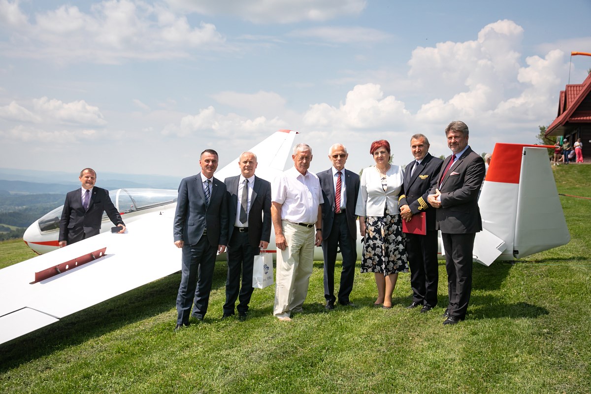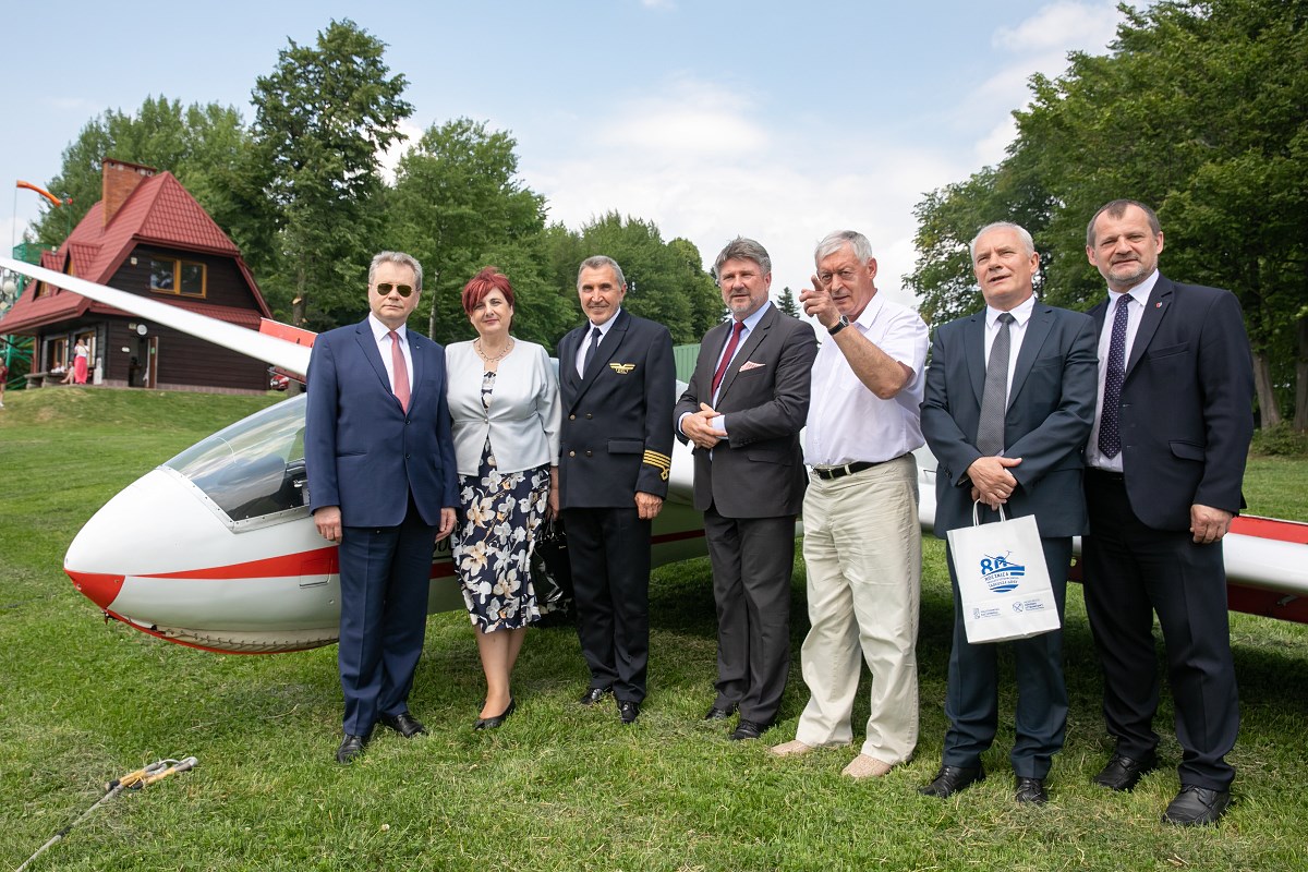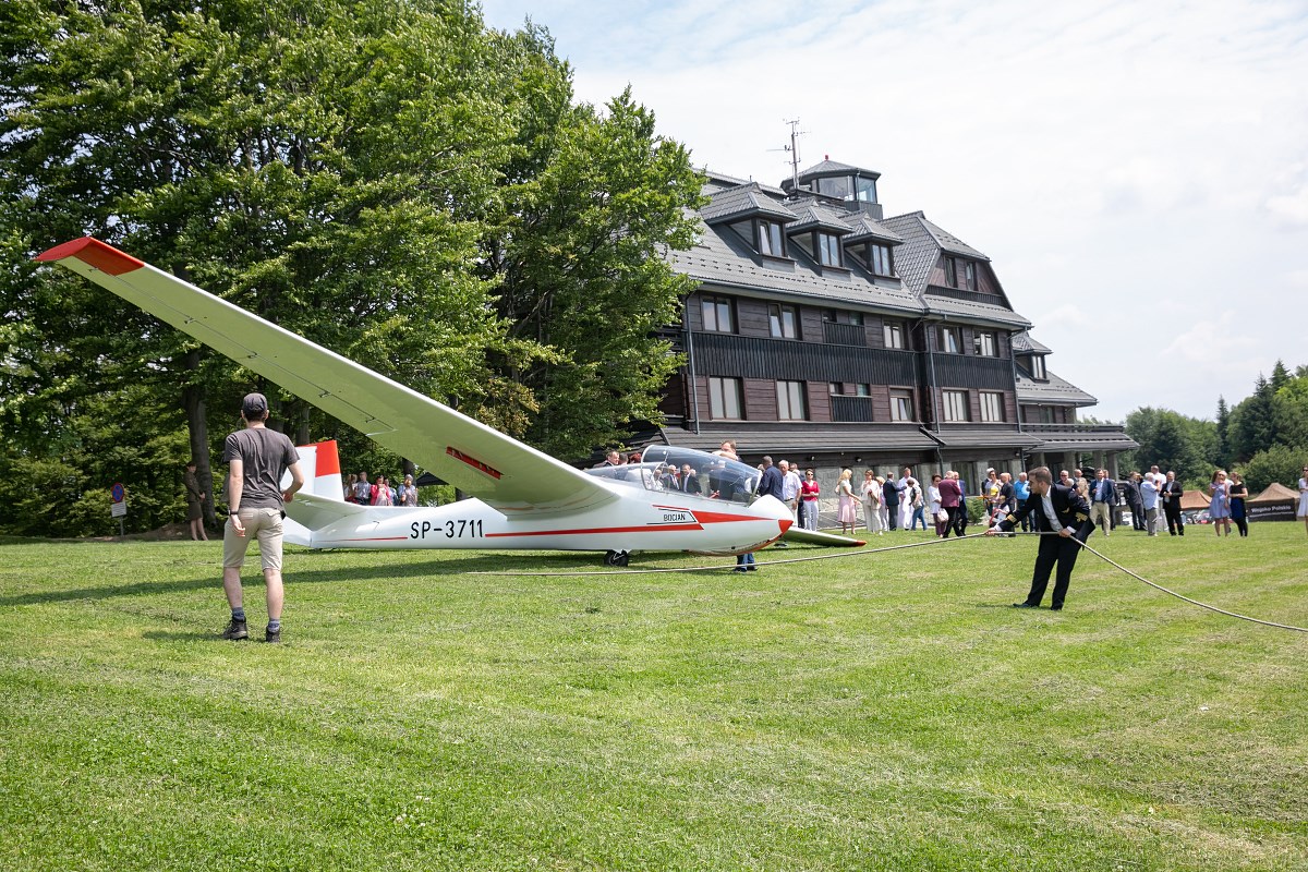 Start szybowca z lin gumowych sprzed Akademickiego Ośrodka Szybowcowego Politechniki Rzeszowskiej. Fot. Tadeusz Poźniak