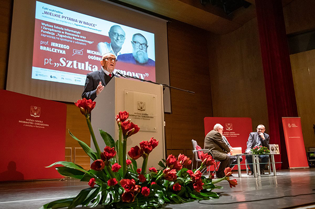 Spotkanie z prof. Jerzym Bralczykiem i red. Michałem Ogórkiem jest pierwszym w tym roku akademickim wykładem z cyklu „Wielkie pytania w nauce”. Odbędą się jeszcze dwa. - 27 lutego zapraszamy na rozmowę o szczęściu z dr Ewą Woydyłło-Osiatyńską i Alfredem Wierzbińskim, a 3 kwietnia na wykład „Cztery pory roku w muzyce i kosmosie” z udziałem prof. Michała Hellera i prof. Krzysztofa Jakowicza. Wspólnie z oo. Dominikanami zaczynamy także cykl „W labiryncie świata”. Pierwsze spotkanie już w styczniu, a jego gośćmi będą abp. Grzegorz Ryś i Szymon Hołownia - zapowiada dr Wergiliusz Gołąbek, rektor Wyższej Szkoły Informatyki i Zarządzania w Rzeszowie.