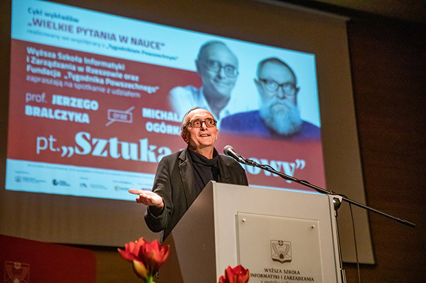 Rozmowy towarzyskie i rozmowy polityczne. Rodzinne i uliczne. Mówienie jest naturalnym stanem bycia człowieka, ale też wcale niełatwą sztuką. Jak rozmawiać, by rozmowa była przyjemnością? - Spontanicznie i naturalnie. Dobra rozmowa sprawia radość. Oddaje nasze myśli i wiąże się z uważnym słuchaniem - zwracał uwagę prof. Jerzy Bralczyk, który wraz redaktorem Michałem Ogórkiem spotkali się w środę, 5 grudnia z publicznością otwartych wykładów „Wielkie pytania w nauce”, których organizatorem jest Wyższa Szkoła Informatyki i Zarządzania oraz Fundacja „Tygodnika Powszechnego”. Tematem wykładu w Filharmonii Podkarpackiej im. Artura Malawskiego w Rzeszowie była „Sztuka rozmowy”.