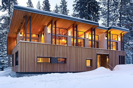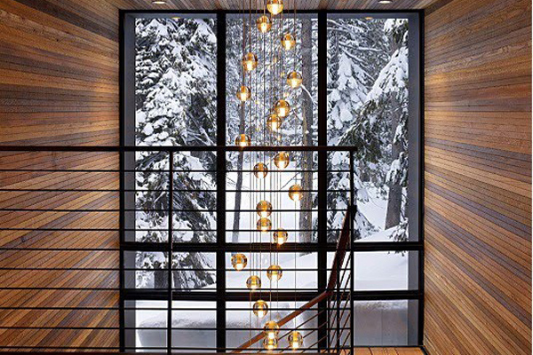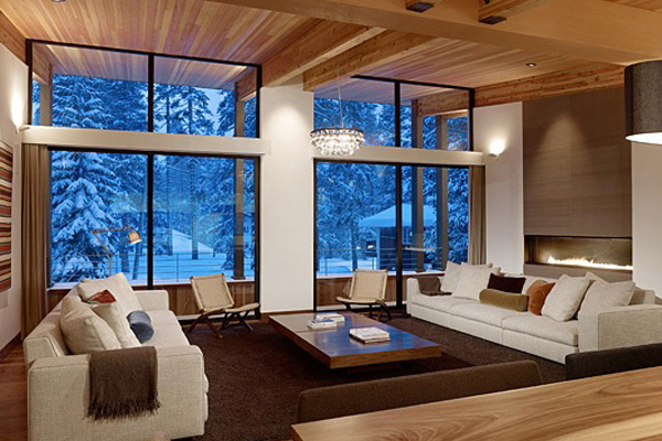Elementem niezbędnym w nowoczesnym, choć często wybudowanym w tradycyjnym stylu, jest duże okno lub przeszklenie całej ściany w salonie. Dawniej unikano wkomponowywania zbyt dużych okien, ponieważ w górskim klimacie byłoby to absurdalnym pomysłem, gdyż przeszklone przestrzenie to zawsze największa strata ciepła. Jednak współczesne technologie pozwalają na tworzenie nawet całych szklanych ścian, ponieważ okazuje się, że nowoczesne okna nie tylko nie wpuszczają zimna do wnętrza domu, ale pochłaniają światło słoneczne, które jest wykorzystywane do ogrzewania domu. Nadmiar energii jest gromadzony, zazwyczaj pod odpowiednio izolowanym dachem. Wykonane w nowoczesny sposób przeszklenia pełnią nie tylko funkcję praktyczną, ale również estetyczną, ponieważ dzięki nim mieszkańcy mogą przez cały rok podziwiać zmieniający się pejzaż gór.