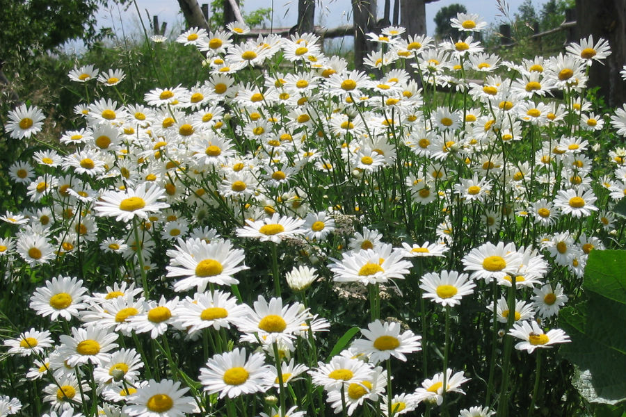 Crazy Daisy – dorasta do 70 cm wysokości. Kwiaty są białe, półpełne do pełnych, z żółtym środkiem, płatki pierzaste. Kwitnie od czerwca do września.