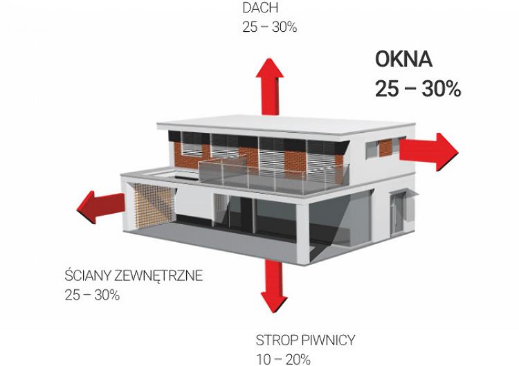 Przez okno może wydostać się bardzo dużo ciepła, nawet 25-30%. Żeby temu zapobiec, wybierajmy okna o odpowiednim poziomie izolacji cieplnej. Mądrze zaplanowane rozmieszczenie powierzchni okien ograniczą niepotrzebne straty energii. Są na to sprawdzone sposoby, jak montowanie dużych przeszkleń od strony południowej, które poprawiają bilans energetyczny budynku. Poziom izolacji zależy od szczelności okna, od zastosowania szkła izolacyjnego oraz materiału, z jakiego wykonano ramę.