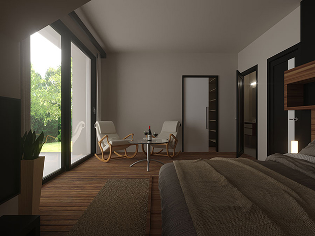 Wewnątrz właściciele będą mieli do dyspozycji otwarta przestrzeń gwarantują wygodną przestrzeń dzienną na parterze oraz duże przeszklenia w budynku. W dużym salonie jest miejsce na kominek. Obok zaplanowano gabinet. Na wyższej kondygnacji znajdą się sypialnie. Ta przeznaczona dla rodziców posiadać będzie dodatkową łazienkę oraz garderobę. Każda szeregówka posiada garaż, a na podjeździe drugie miejsce postojowe. Układ działek przy szeregówkach narożnych umożliwia przejazd do części ogrodu znajdującej się za budynkiem, a także stworzenie trzeciego miejsca parkingowego.