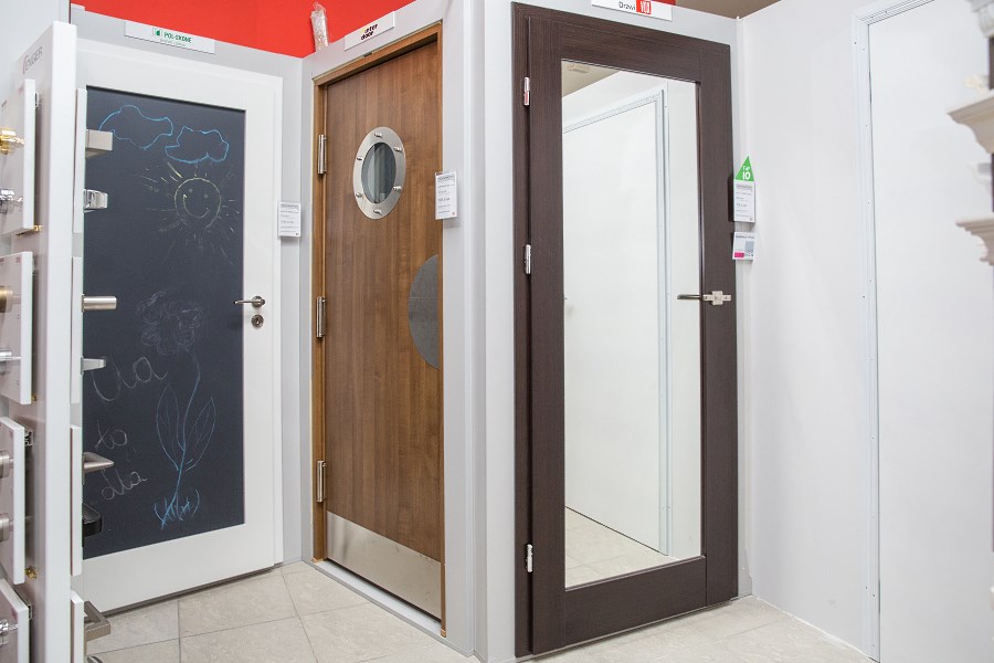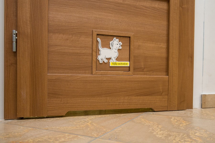 Nie tylko. Drzwi z klapką dla kota to tylko jeden z produktów całej serii - Baw się z nami drzwiami. Są w niej drzwi z lustrem - świetne do sypialni i garderoby, a drzwi do łazienki mogą mieć nie tylko klapkę dla kota, ale i listwę, na której można powiesić ręczniki. W tej serii są też drzwi z tablicą magnetyczną, co przyda się np. w kuchni. W naszym salonie mamy także drzwi łamane i drzwi z odwrotną przylgą – to innowacyjny sposób otwierania, dzięki któremu drzwi w korytarzu wyglądają jednakowo, bez względu na to, czy otwierają się na zewnątrz, czy do wewnątrz pomieszczenia. Mamy także drzwi z niewidoczną ościeżnicą i wiele innych, nietypowych rozwiązań technicznych, które klient odwiedzający salon może zobaczyć na ekspozycji. W dodatku w salonie można się umówić ze sprzedawcą na godzinę. Sprzedajemy produkt kompleksowo, a więc z montażem. Nasz montażysta podjedzie na miejsce, zrobi pomiar, doradzi.