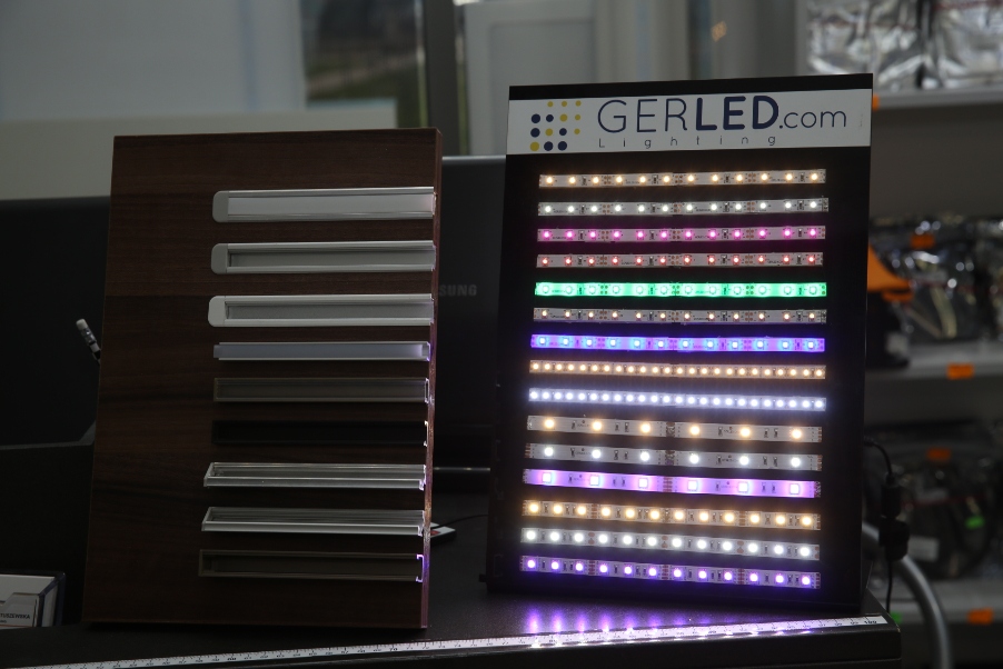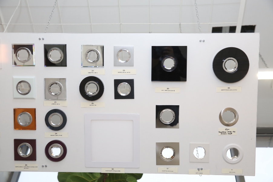 W firmie SCANDTERM dostępne jest także specjalne oświetlenie dla ekspozycji, które pozwala uzyskać temperaturę barwową światła dziennego. Jest to temperatura 5700K, dzięki której uzyskuje się najwyższy współczynnik oddawania barw. Prezentacja wystawy w takim świetle umożliwia pokazanie prawdziwego koloru danego produktu oraz pozwala uniknąć reklamacji związanych z rozbieżnością kolorystyczną w sklepie i w naturalnym świetle dziennym.