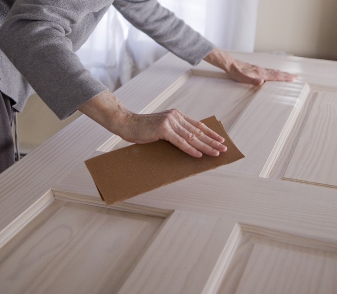 Gdy nasze drzwi są bardzo stare i widać na nich głębokie rysy lub inne ubytki, warto je wypełnić za pomocą szpachli. A następnie przy pomocy papieru ściernego – najpierw o większej, a później drobniejszej ziarnistości – zeszlifować, oczyszczając drzwi z jej nadmiaru. Dzięki temu uzyskamy efekt gładkiej powierzchni, a farba nie będzie wchodziła w zagłębienia. Nowsze, czyli drzwi w lepszym stanie, wystarczy porządnie umyć i odtłuścić. Przed położeniem farby na drzwi drewniane, dobrze jest jeszcze zaimpregnować drewno.