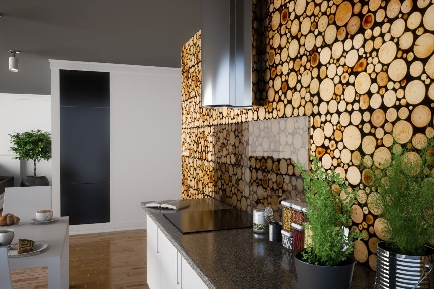Jeżeli w kuchni zdecydujemy się na tzw. wyspę i ozdobimy ją drewnianymi motywami, wówczas uzyskamy spójną aranżację z oryginalnym akcentem. Aby przedłużyć im życie, w newralgicznych miejscach, takich jak np. strefa gotowania, pamiętajmy o dodatkowym zabezpieczeniu powierzchni szybą.