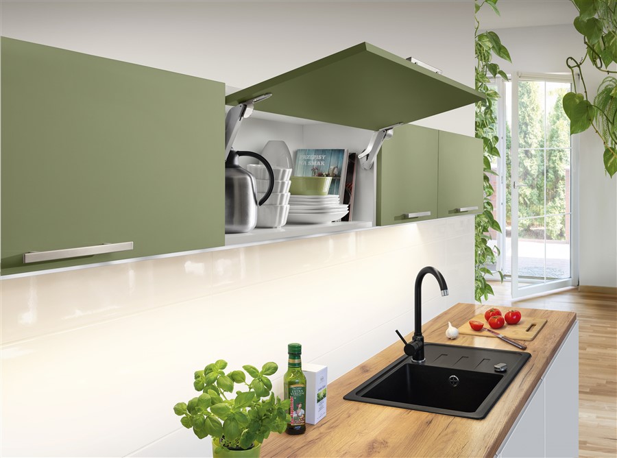 Minimalizm odciąża blaty ze sprzętów kuchennych i akcesoriów, zamyka otwarte półki i przenosi wszystko do szafek i szuflad, nadając tym samym lekkości. Aby oszczędzać w nich miejsce, wybiera kompaktowe i drobne podnośniki, umożliwiające wygodne ich otwieranie. – Dzięki niezwykle małym rozmiarom Free Space nadaje się do większości zastosowań, również z klapą bez uchwytu – mówi ekspert. – Minimalizuje miejsce potrzebne do montażu, zostawiając więcej przestrzeni w szafce. Jego design i kolorystyka są dopasowane do zmieniających się trendów. Dostępny w kolorach białym, szarym, antracytowym i czarnym – wymienia.
