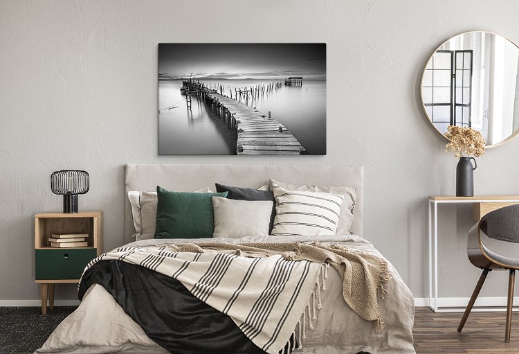Jeśli chcemy zamienić naszą sypialnię w miejsce idealne do odpoczynku, w naszą własną oazę spokoju, postawmy na nastrojowy pejzaż, który będzie wywoływał w nas pozytywne emocje. Świetnym przykładem może być malowniczy zachód słońca. Czerwona kula zachodząca za horyzont, która zabarwia niebo i powierzchnię wody na pomarańczowo i fioletowo, odmieni dotychczasowy wystrój nadając mu dosłownie rumieńców. Taki krajobraz nad łóżkiem to sprawdzony przepis na przytulną stylizację. A co jeśli wolimy nieco bardziej stonowaną aranżację i nie chcemy, by kolory rozpraszały nas wieczorem, gdy będziemy kładli się spać? Wówczas warto zawiesić na ścianie czarno-białe przedstawienie. Łagodny wizerunek drewnianego molo, które wcina się w spokojną taflę wody, przyniesie nam ukojenie i stanie się doskonałym tłem do wypoczynku. Oto, co jeszcze wybrał dla nas specjalista z Redro: