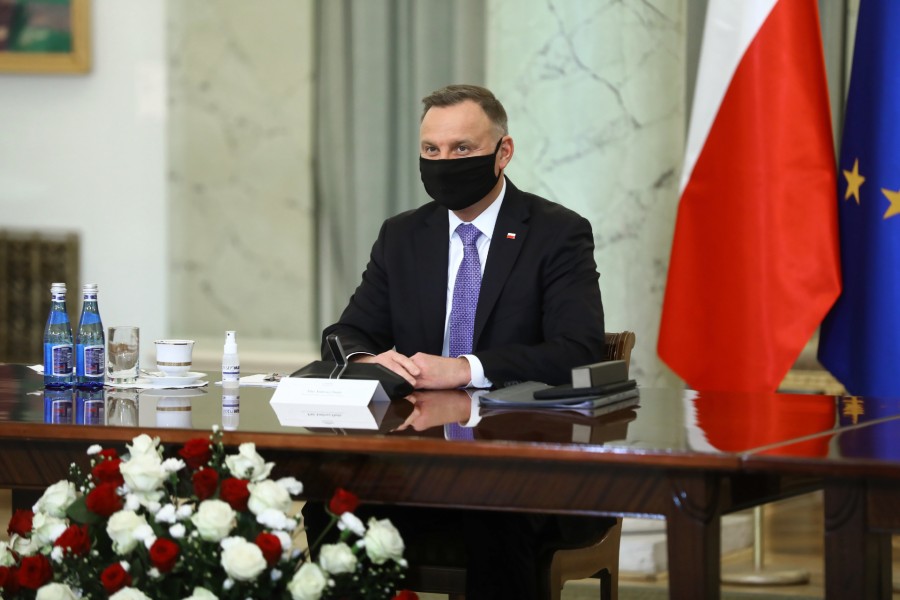 Prezydent Andrzej Duda podczas inauguracyjnego posiedzenia Zespołu ds. opracowania projektu regulacji wprowadzającej instytucję sędziów pokoju. Fot. Rafał Guz/PAP